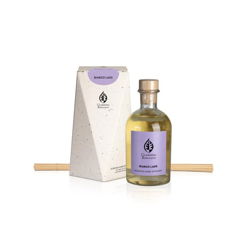 Bianco Laos se inspira en un viaje por los sonidos y modas hippies de los años 70, pero con un carácter contemporáneo y muy metropolitano al mismo tiempo. Una pieza icónica de la colección Giardino Benessere, creada por Paolo y Tiziana, para glorificar los años de Paz y Amor con una creación de carácter fuerte, provocativo y narcótico, capaz además de ampliar el órgano olfativo de esta colección revolucionaria para todos los artistas de capas. Bianco Laos se abre con un bouquet floral especiado, chispeante e hipnótico, donde resuenan la pimienta rosa y el castaño, envueltos en la seducción del clavel rojo y el iris morado.