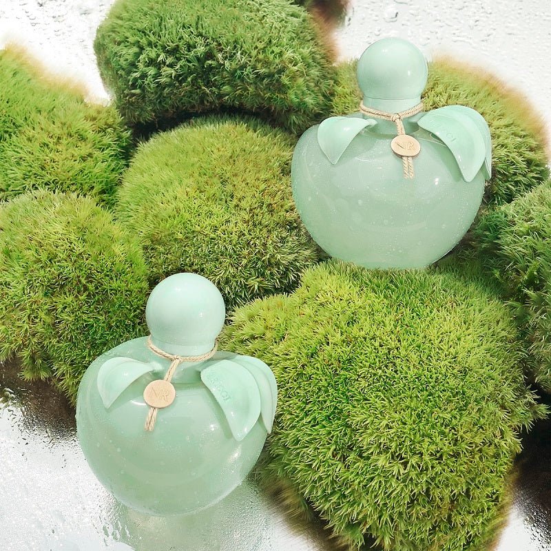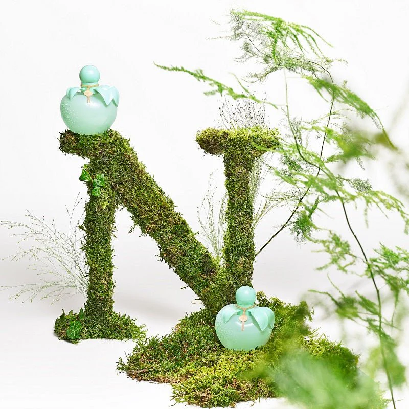 Reinventado en verde primavera brillante, el icónico frasco con forma de manzana de Nina es deliciosamente fresco para esta nueva edición limitada de Nina Nature.»