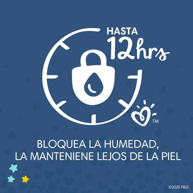 ¡Protección Swaddlers pensada para la noche! Los pañales Pampers Swaddlers Overnights cuentan con Pampers All Night Protection *, lo que significa que están diseñados para aguantar incluso las noches más pesadas. La cubierta exterior es Blankie Soft, al igual que los Swaddlers normales, para que puedas envolver a tu bebé cómodamente toda la noche. Y, gracias a un indicador de humedad que cambia de color, sabrás cuándo es el momento de cambiar. Los pañales Swaddlers Overnights también cuentan con una cubierta Heart Quilt que absorbe la humedad y el desorden de la delicada piel de su bebé. Además, los canales de aire ayudan a distribuir la humedad de manera uniforme para una noche de sueño confortable. Para dulces sueños, pruebe nuestro pañal nocturno más suave: Swaddlers Overnights. * Hasta 12 horas de protección.