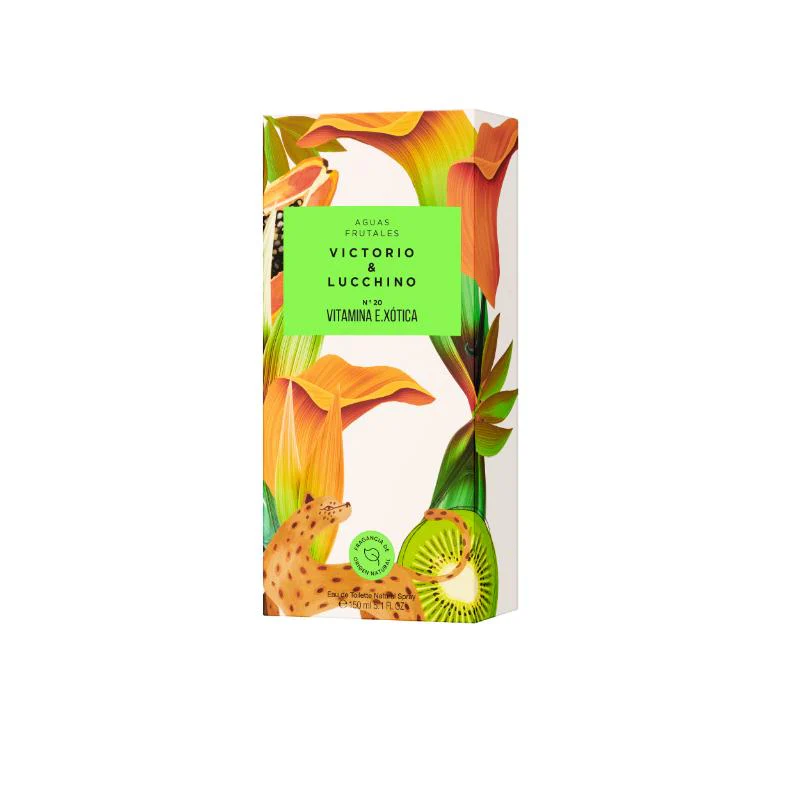 Si eres de las aventureras que exprimen la vida al máximo, Vitamina E-xótica es tu fragancia. Para comenzar, la combinación entre las notas cítricas junto a la papaya y el kiwi forma un intrépido acorde. Su femenino corazón es un viaje entre la sensualidad del jazmín, la peonía y la flor de la pasión.