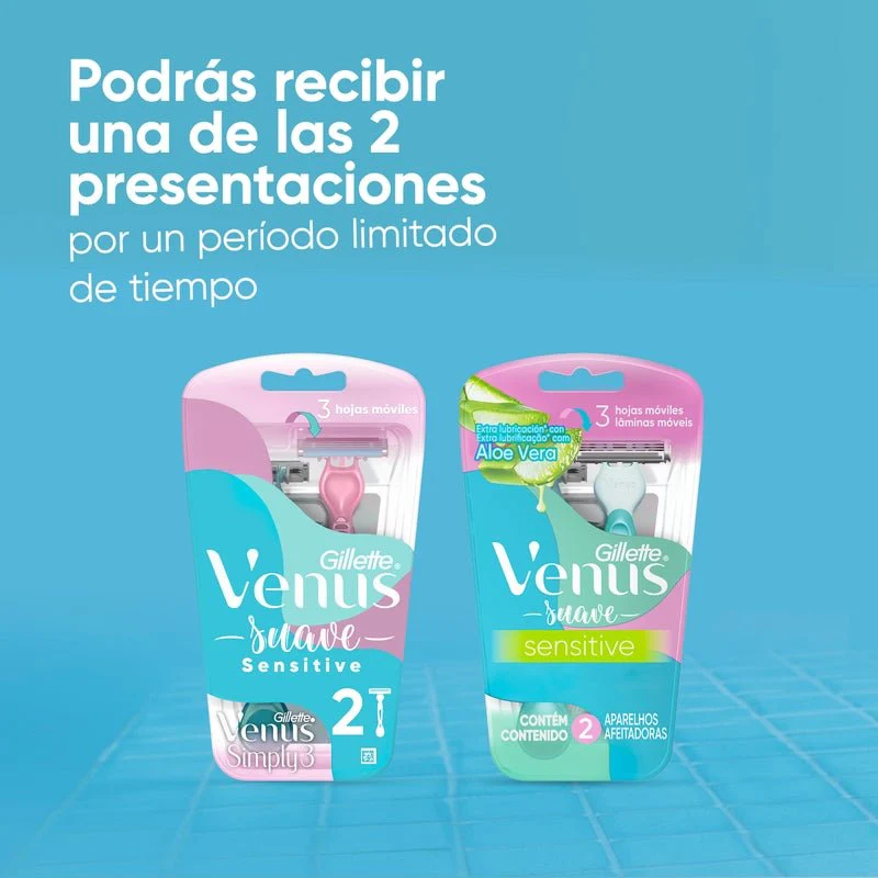 •CONTENIDO: Este producto trae 2 Máquinas de Afeitar Desechables Gillette Venus Sensitive